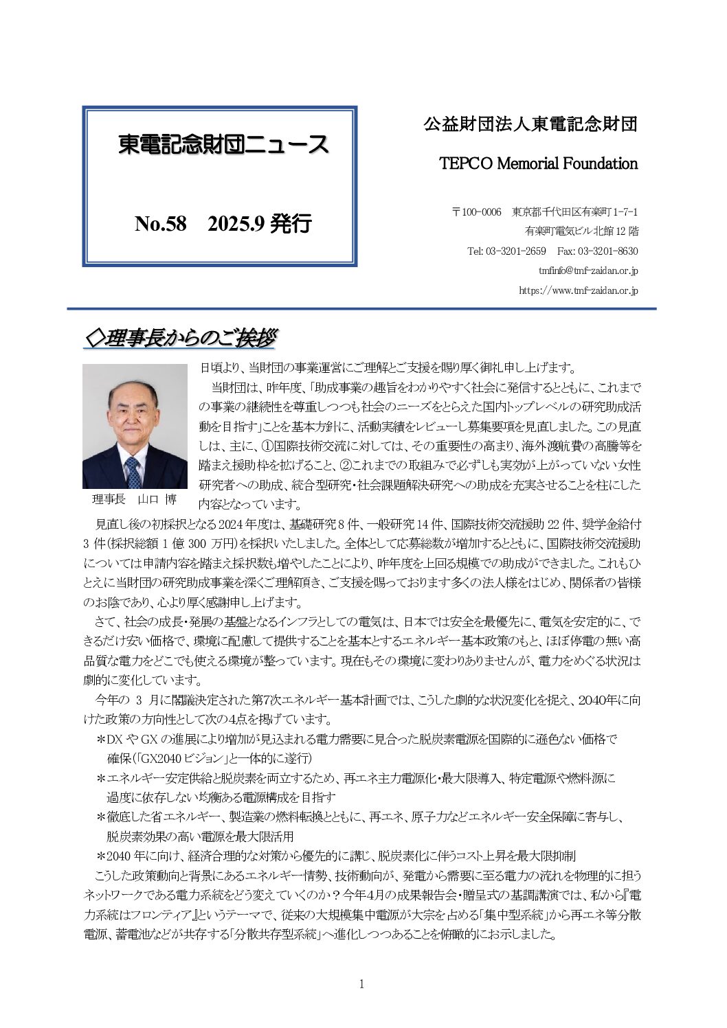 財団ニュースNo.58を発行いたしました。
